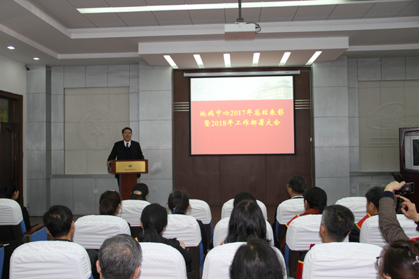 杨宝峰校长出席会议并作了重要讲话,他首先介绍了自己参加十九大宣讲的一些启示和思路。杨校长指出地病中心这些年来在国家地方病防治、技术咨询、学科建设、人才培养、科学研究等方面做了大量工作,取得了令人瞩目的成绩,并感谢地病中心全体职工对地病中心领导班子的支持。杨校长鼓励地病中心不忘初心、践行使命,希望地病中心在党委的带领下,在学校的大力支持下,2018年能够更上一层楼,取得更大的成绩。
