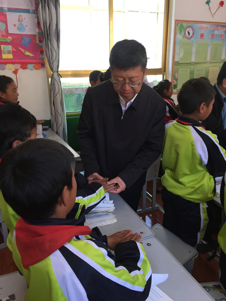 5月21日,调研组在洛隆县俄西乡第二小学为学生作临床大骨节病检查。
