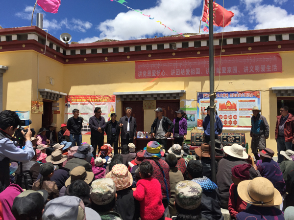 5月20日,调研组在洛隆县孜托镇德通村作地方病防治知识宣传。