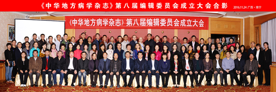 2016年11月24日,《中华地方病学杂志》第八届编辑委员会成立大会在广西南宁市召开。中华医学会杂志社副社长金东,中国疾病预防控制中心地方病控制中心主任孙殿军以及来自全国各地的71位编委、14位通讯编委出席了本次会议。换届会议由《中华地方病学杂志》总编辑孙殿军和副总编辑王丹娜主持。