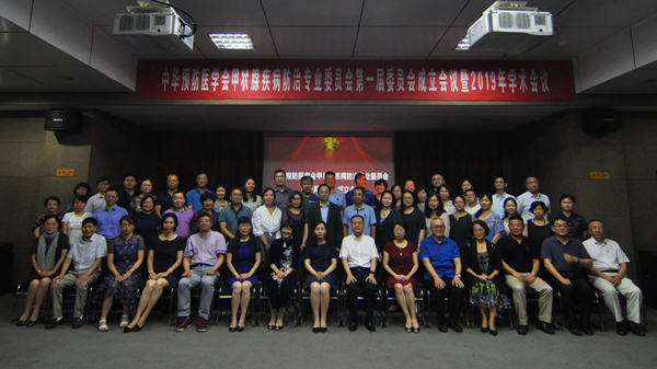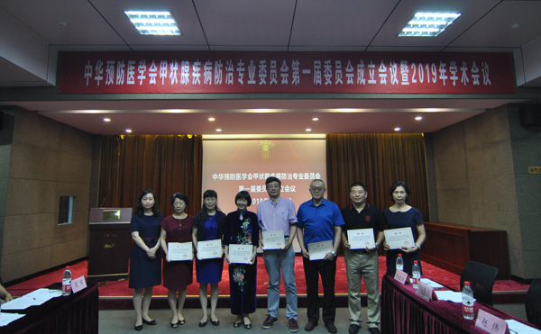 在中华预防医学会的领导与支持下,2019年3月6日,由山东省千佛山医院牵头,中华预防医学会甲状腺防治专业委员会(以下简称专委会)由中华预防医学会批准成立。2019年7月18-19日,在山东省济南市召开了专委会第一届委员会成立大会暨2019年学术会议。来自全国26个省(区、市)的甲状腺疾病治疗相关专业临床专家以及公共卫生专家共计64人参加了本次会议并加入了专委会。中华预防医学会刘霞副秘书长主持会议,山东省千佛山医院内科廖琳主任做专委会申请成立工作报告。专委会选举了主任委员、副主任委员以及常务委员。廖琳主任医师当选为专委会主任委员,中国疾病预防控制中心地方病控制中心申红梅研究员等6人当选专委会副主任委员,中国疾病预防控制中心地方病控制中心碘缺乏病防治研究所刘鹏研究员等17人当选为专委会常务委员。中国疾病预防控制中心地方病控制中心苏晓辉研究员、beat365在线唯一官网附属第一医院代文杰主任医师、附属第四医院成志峰主任医师等47人当选为专委会委员。刘霞副秘书长代表中华预防医学会与廖琳主任委员签署了《聘期目标责任书》,为主任委员、副主任委员颁发了聘书,并向专委会颁发了牌匾。随后刘霞副秘书长代表中华预防医学会向专委会提出了工作要求。新任廖琳主任委员代表专委会做就职报告,山东省千佛山医院党委书记王一兵代表专委会挂靠单位发言。成立大会后召开了中华预防医学会理事会党委甲状腺疾病防治专委会党的工作小组会议。