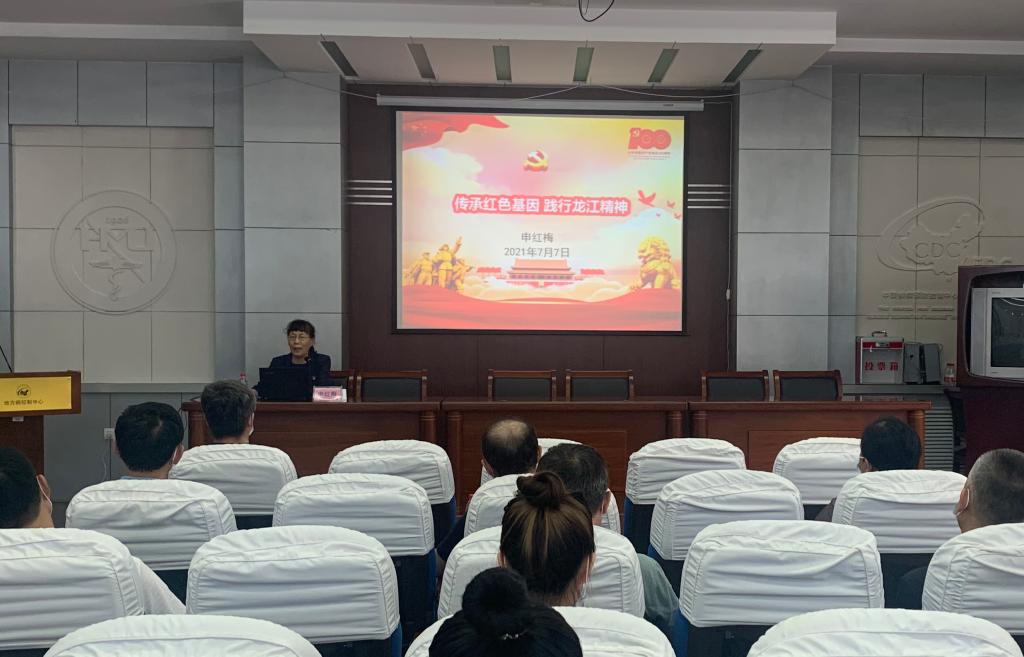 为深入推进地病中心“党史”和“四史”学习教育,引导党员干部发扬优良传统,践行初心使命,7月7日,地病中心副主任申红梅为全体党员干部做《传承红色基因 践行龙江精神》专题辅导。本次专题辅导采取线上线下相结合方式进行,地病中心全体中层以上干部、中心机关和碘实联合党支部全体党员、研究生党员代表在地病中心大会议室主会场参会,其他全体党员线上同步收看。党办副主任王艳主持会议。