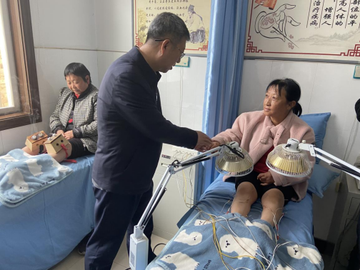 3月28日,调研组在麟游县崔木镇中心卫生院询问患者物理治疗效果