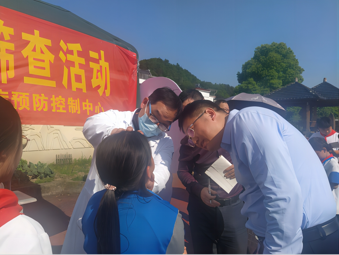裴俊瑞所长在缙云县前路小学为小学生检查氟斑牙
