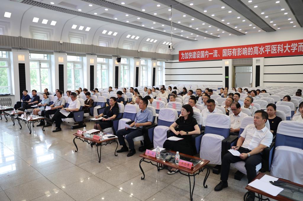 为深入学习习近平新时代中国特色社会主义思想和党的二十大精神,进一步强化院系党组织政治功能和组织功能,切实以品牌培育激发党建工作生机活力,7月12日下午,学校党委在主楼三楼演讲厅召开“红医芳华”首届院系党建品牌培育创建答辩会。评委由学校党委常委、地病中心党委书记袁重胜以及主楼机关各党务部门负责人等7位同志担任。学校党委正处级组织员、组织部副部长周桂琴主持会议。