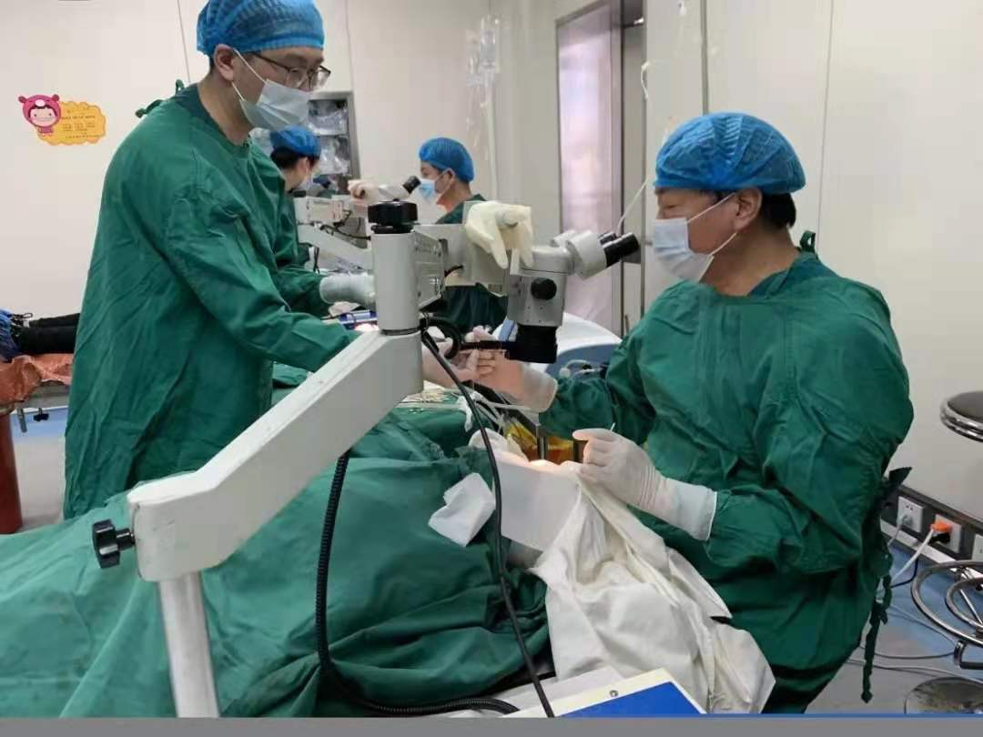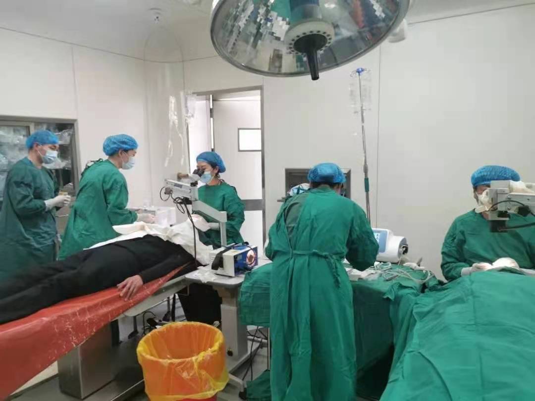 (上图为刘平教授和张弘教授及其博士团队在为白内障患者做免费复明手术)