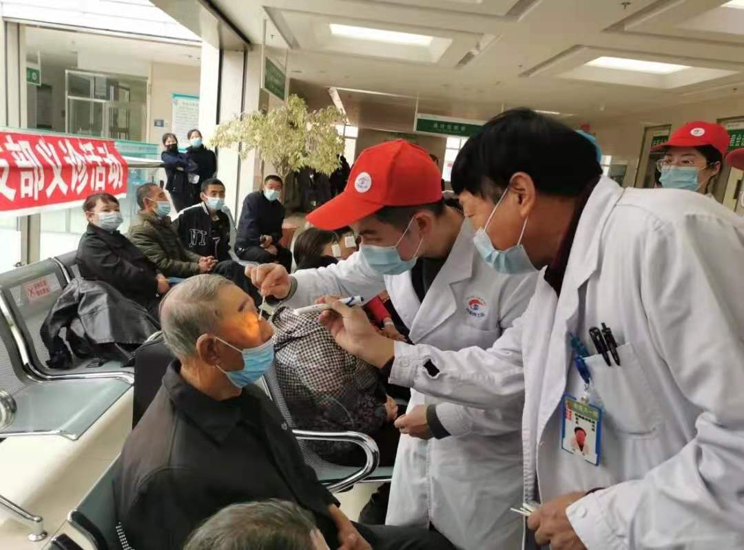 2021年4月17日早晨七点冒着蒙蒙细雨,博士团队踏上了前往明水的征程,驱车3个多小时,上午10点20分,博士团首先到达达明水县人民医院,下车后顾不得休息,换上白服,调整好设备,为门诊大厅180多位就医困难、殷切期待的患者进行免费义诊筛查,并为筛选出28位符合白内障手术要求的患者,进行术前检查。接着刘平教授带领部分团队成员开展免费手术治疗。张弘教授带领其他博士团成员前往明水县中心敬老院为50余名老人进行义诊。