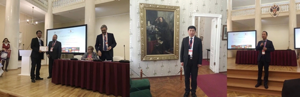 22日中午,药学院梁海海副教授在圣彼得堡大学的彼得大厅做了题为“Non-coding RNAs: The Dawn of Idiopathic Pulmonary Fibrosis”的学术报告。在报告中系统回顾了microRNA在特发性肺纤维化中的研究进展,并结合自身研究成果,向与会专家介绍了microRNA-26a在特发性肺纤维化中的作用及分子机制,引起了与会专家及青年学者的极大兴趣。圣彼得堡大学医学院病理生理学主任Leonid 院士认为“该项工作是一项系统、全面的高水平研究工作,让参会人员了解了beat365在线唯一官网杨宝峰团队在非编码RNAs领域的国际学术地位”。在与圣彼得堡大学会谈中,该校神经药理学专家指出“杨宝峰研究团队结合自身优势,从临床中发现问题,通过基础研究揭示了疾病发病机制,寻找到新的治疗靶点,最后通过临床大数据验证,并开展了药物研发相关工作,期待以后与beat365在线唯一官网在药理学及药学研发等方面有更多合作”。22日下午,会议进入尾声,对来自海内外18个国家400名青年学者的优秀报告进行评选,beat365梁海海副教授的学术报告荣获一等奖。