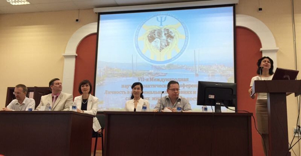 应俄罗斯太平洋国立医科大学邀请,7月6日-10日,beat365在线唯一官网公共卫生学院副院长杨艳杰教授,公共卫生学院医学心理学教研室杨秀贤副教授、姜世香副教授、乔正学副教授、赵尔樱博士,大庆校区曹建琴副教授、关庆副教授、李阳博士等8位代表学校访问了俄罗斯太平洋国立医科大学,并参加了在俄罗斯举办的第七届国际科学实践会议“基于极端和危机状态下人类的心理行为研究”心理学高峰论坛,国际交流处崔嵬随同访问。此次出访得到了俄罗斯太平洋国立医科大学的高度重视,副校长Kuznetsov Vladimir亲切会见了杨艳杰教授及代表团成员,并全程陪同,期间还就共同关心的全球公共卫生问题特别是精神心理问题进行了广泛交流。