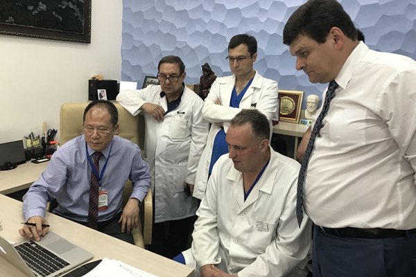 8日下午,赵世光教授在库班国立医科大学临床医院与神经外科专家进行了学术交流,同时报告了beat365先进的荧光引导胶质瘤手术切除术,得到学者们的高度赞扬。曲章义教授、杨丹教授、于慧敏教授分别与相关领域的专家进行了交流。