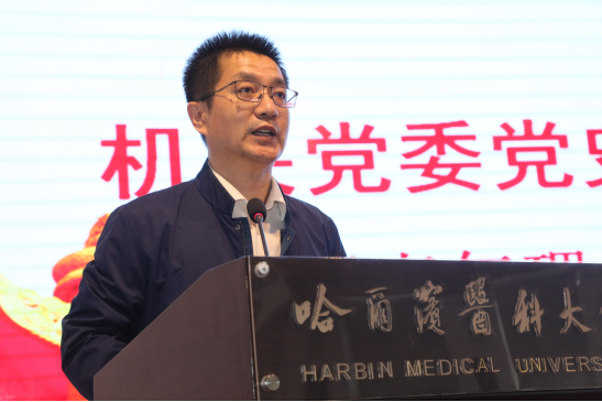机关团支部书记、青年理论学习小组组长孙健文作了表态发言。感谢大学党委和机关党委对机关广大青年干部的培养,代表机关广大青年干部表示,一定珍惜青年理论学习小组这一组织平台,积极参加机关青年理论学习小组的各项活动,机关青年党员将赓续共产党人的精神血脉,从党史学习中感受红色精神、汲取红色力量、传承红色基因,在担当作为中淬炼初心、在务实创新中践行使命,坚定信心、锐意进取、为建设“双一流”和百年医学强校而奋勇前进!