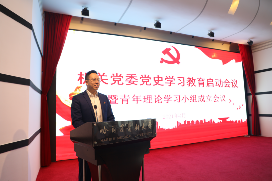 贺景平在讲话中强调,今年是中国共产党成立100周年,中央、省委、省委教育工委和大学党委已经对如何开展好党史学习教育提出明确要求,作出安排部署。机关党委举行机关党史学习教育启动会议暨青年理论学习小组成立会议,正当其时,十分必要。同时对机关党委开展好党史学习教育提出三点意见:一要认清重大意义。我国正处于实现中华民族伟大复兴关键时期,世界正经历百年未有之大变局。在这一重大历史时刻,组织开展党史学习教育,对于总结历史经验、认识历史规律、掌握历史主动,对于传承红色基因、牢记初心使命、坚持正确方向。对于深入学习领会习近平新时代中国特色社会主义思想,进一步统一思想、统一意志、统一行动,建设更加强大的马克思主义执政党,在新的历史起点上奋力夺取新时代中国特色社会主义伟大胜利,具有重大而深远的意义。二要把握整体要求。按照党中央“学党史、悟思想、办实事、开新局”的目标要求,2021年全年,要重点把握好三个阶段的学习教育,面向机关全体党员,以处级以上领导干部为重点开展学习教育实践。注重融入日常、抓在经常。做到学史明理、学史增信、学史崇德、学史力行。三要精心组织实施。各党支部要加强组织领导;要切实为群众办实事解难题;要注重方式方法创新。注重统筹兼顾,把党史学习教育同实际工作和beat365中心工作紧密联系起来,同“双一流”和百年医学强校建设紧密联系起来。