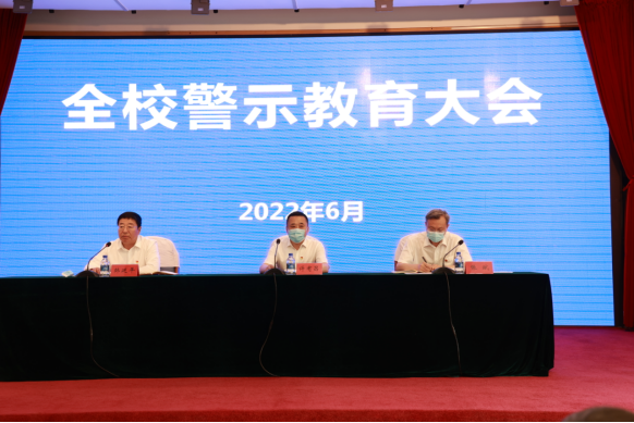 张斌代表学校党委感谢省纪委监委第六监督检查室长期以来对学校工作的指导和支持。张斌指出,前车之覆,后车之鉴,召开本次全校警示教育大会,就是要深刻领悟“两个确立”的决定性意义,增强“四个意识”、坚定“四个自信”、做到“两个维护”,全面贯彻落实党中央和省委关于全面从严治党的决策部署,按照省委书记许勤同志和省纪委书记张巍同志的要求,深刻开展警示教育,深入查找领导责任、制度规定、执行落实等方面的漏洞短板,用身边典型案例教育大家,坚决割除毒瘤、清除毒源、肃清流毒,深化以案促改、以案促建、以案促治。教育引导广大党员领导干部以案为鉴、警钟长鸣,始终知敬畏、存戒惧、守底线,筑牢拒腐防变的思想防线。
