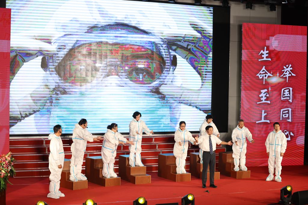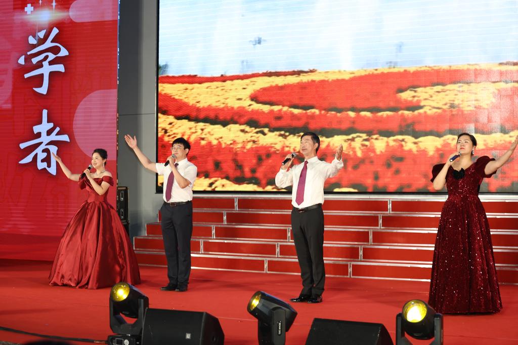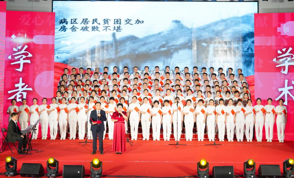 庆祝大会下半部分,附属医院和学校离退休老专家献上精彩的文艺演出,或青春活泼、或抒情优雅、或感人至深。通过大合唱、集体舞、诗朗诵、沙画等多种形式展现了医师们丰富多彩的内心世界和大爱无疆的高尚情怀。老中青三代医师欢聚一堂,共同庆祝第六个中国医师节。