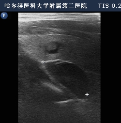 高频超声检查显示刘先生右侧甲状旁腺腺瘤