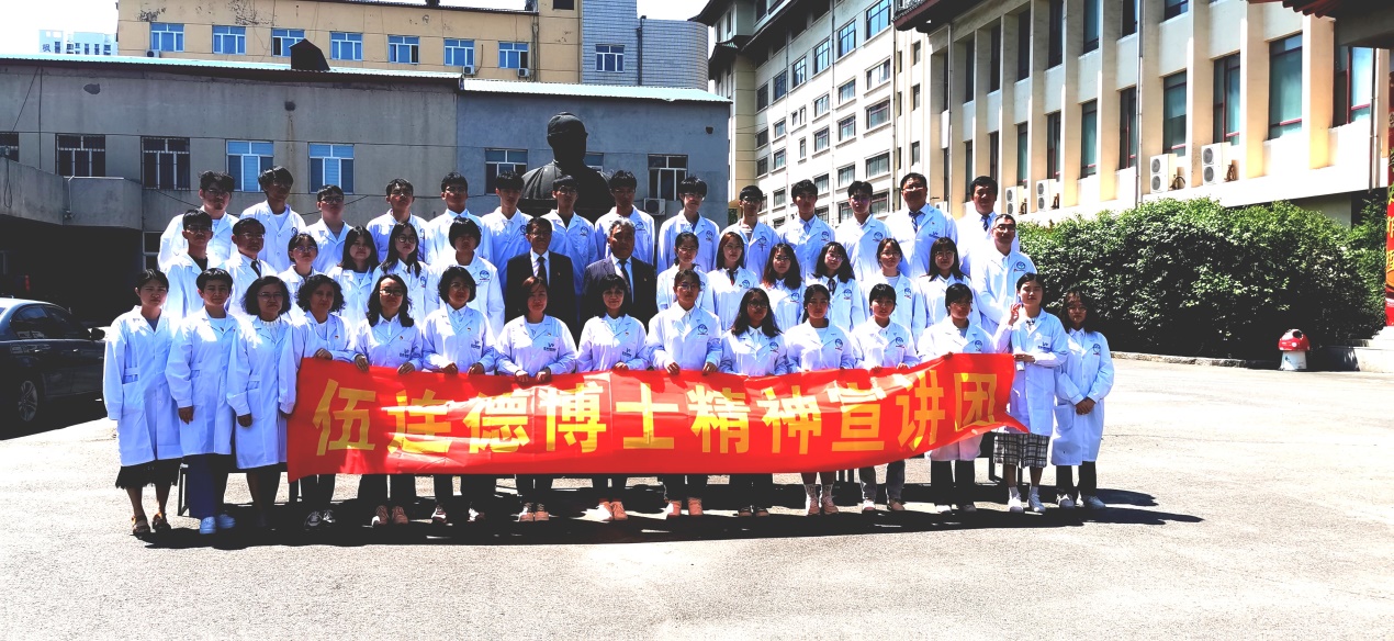 2021年6月10日,基础医学院“伍连德博士精神宣讲团”启动仪式在伍连德博士雕像前举行。本次系列活动的宗旨是通过教师和伍连德班学生公众宣讲,介绍和解读伍连德博士生平事迹和抗疫精神,弘扬和继承伍连德博士“赤诚爱国,自强创业”的爱国精神。启动仪式由基础医学院副书记李辉主持。