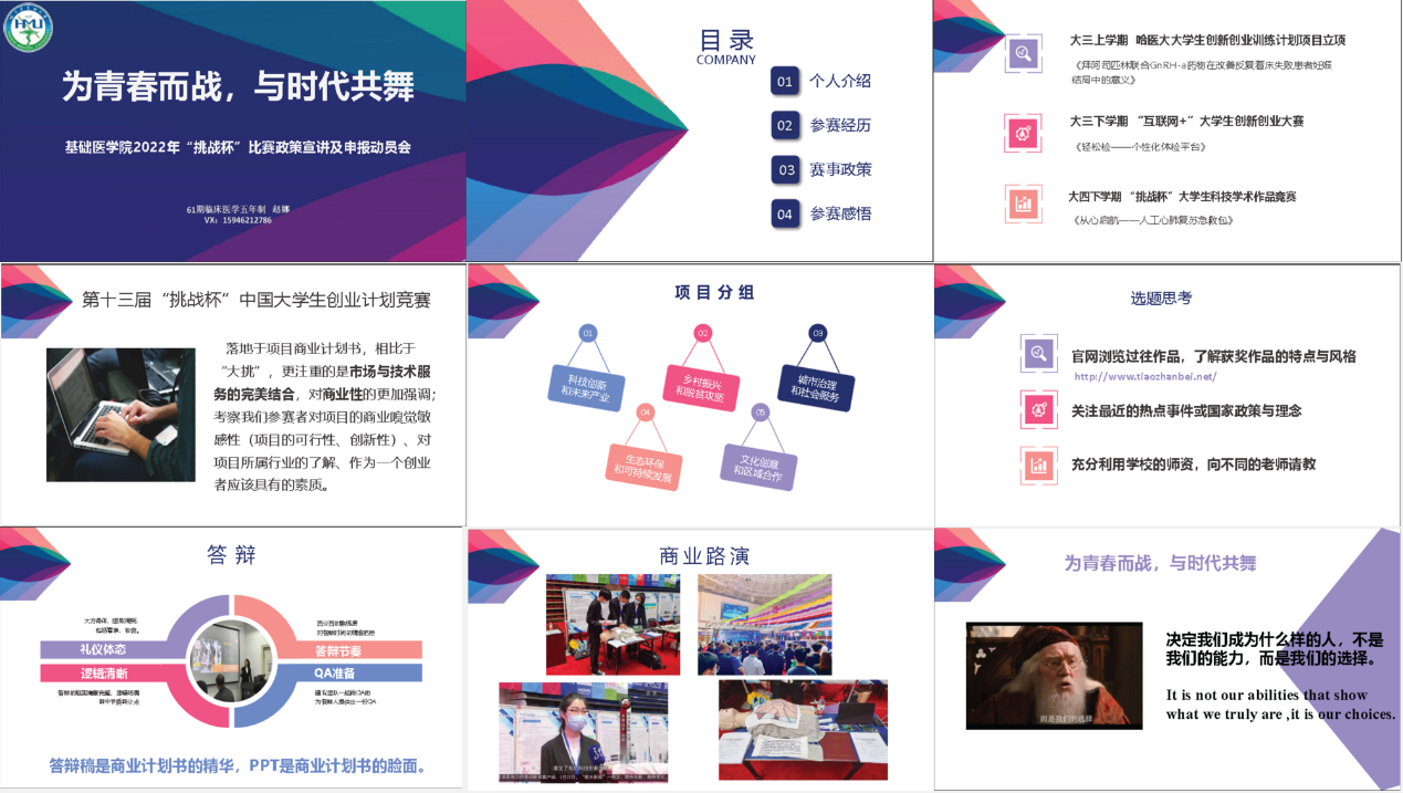基础医学院为了深入开展“挑战杯”竞赛的工作,在学院团委书记郭铁云指导号召和各位学生干部的积极策划宣传下于2022年1月18日下午举办了一场主题为“同频共振,创业青春”的挑战杯竞赛云端动员会,旨在回顾总结学校挑战杯竞赛的工作,了解学校的激励政策,熟知竞赛的各项内容,走进参赛学生的生活,研究和部署下一阶段的工作任务。