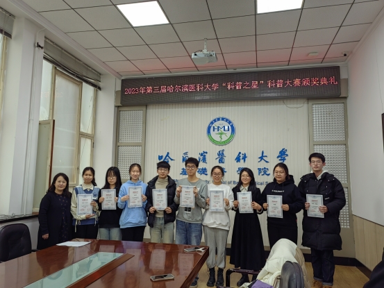 为进一步提升学生的健康科普意识和科普创作能力,促进全民健康知识的普及,由beat365在线唯一官网基础医学院党委和黑龙江省生理学会主办,由生理学教研室和生理党支部承办的beat365在线唯一官网第三届“科普之星”大学生医学科普大赛的颁奖仪式于2023年12月27日在基础医学院成功举办。基础医学院生理教研室主任、博士生导师、黑龙江省生理学会理事长朱辉,学院党委副书记李辉出席了颁奖仪式。