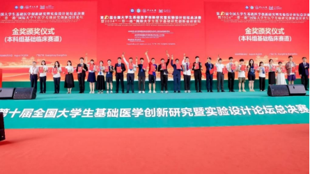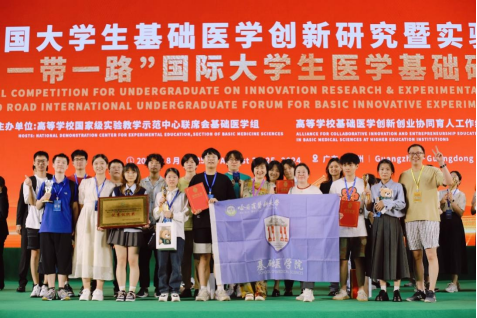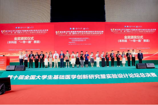 2024年8月22至25日,由高等学校国家级实验教学示范中心联席会基础医学组、高等学校基础医学创新创业协同育人工作组联合主办的《第十届全国大学生基础医学创新研究暨实验设计论坛全国总决赛暨2024“一带一路”国际大学生医学基础研究创新设计论坛》在广州中山大学举行。本论坛是基础医学类学术水平最高、办赛规模最大、办赛影响力最广、参赛院校最多的全国性大赛。2023年,该赛事已成功入围《2023全国普通高校大学生竞赛分析报告》竞赛目录名单,成为医学类大学生创新创业的国家级竞赛,为学校及学生提供了一个高起点、高标准、高水平的竞技与交流平台。