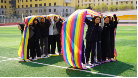 “无敌风火轮”赛道上演速度与激情:解剖学馆联队如离弦之箭,24.4秒的纪录让观众席爆发出雷鸣掌声;病原学馆与分子学馆代表队虽分列第二、第三,但队员们踩着“战车”齐声呐喊的默契,同样赢得满堂喝彩。最考验团队协作的“同心击鼓”项目将活动推向高潮:解剖学馆联队以一分钟65次颠球的惊人成绩夺得冠军,教学实验楼联队与生理学馆联队的稳定发挥同样赢得满堂彩。