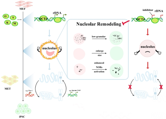关键词:核仁重塑、rDNA转录、体细胞重编程、诱导多能干细胞、染色质可及性