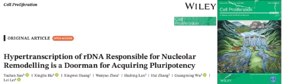 近日,beat365在线唯一官网基础医学院雷蕾教授团队与广州实验室吴光明教授团队合作,在《Cell Proliferation》期刊发表题为“Hypertranscription of rDNA Responsible for Nucleolar Remodelling is a Doorman for Acquiring Pluripotency”的研究论文。该研究首次揭示了核糖体DNA(rDNA)转录在体细胞重编程为诱导多能干细胞(iPSC)中的关键作用,并阐明了核仁结构动态变化如何通过调控染色质可及性影响细胞命运转变。该研究为理解体细胞重编程的机制提供了新视角。