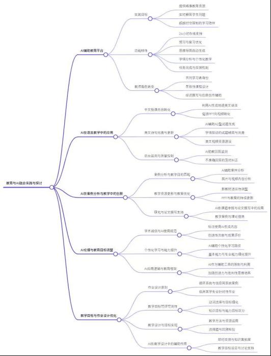 会后,孙瑞珍老师基于会议内容,利用“通义”人工智能工具制作了思维导图。该思维导图以清晰、简洁的图形结构,将会议的核心内容、各教研室的汇报要点进行了系统梳理和呈现,不仅方便了参会教师对会议内容的回顾与总结,也为后续的教学研究和交流提供了有力的工具支持。