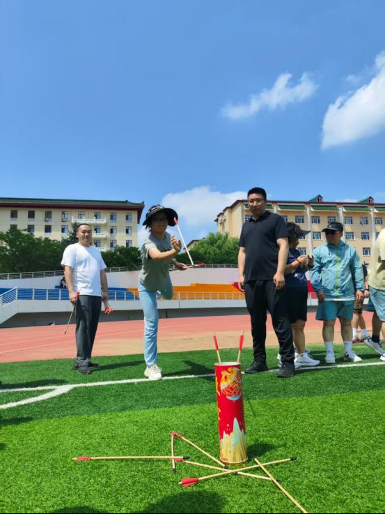 在“投壶”项目中,教职工们凝神聚力、精准投掷,展现了出色的手眼协调能力,现场观众不时为精彩的入壶表现报以阵阵喝彩。
