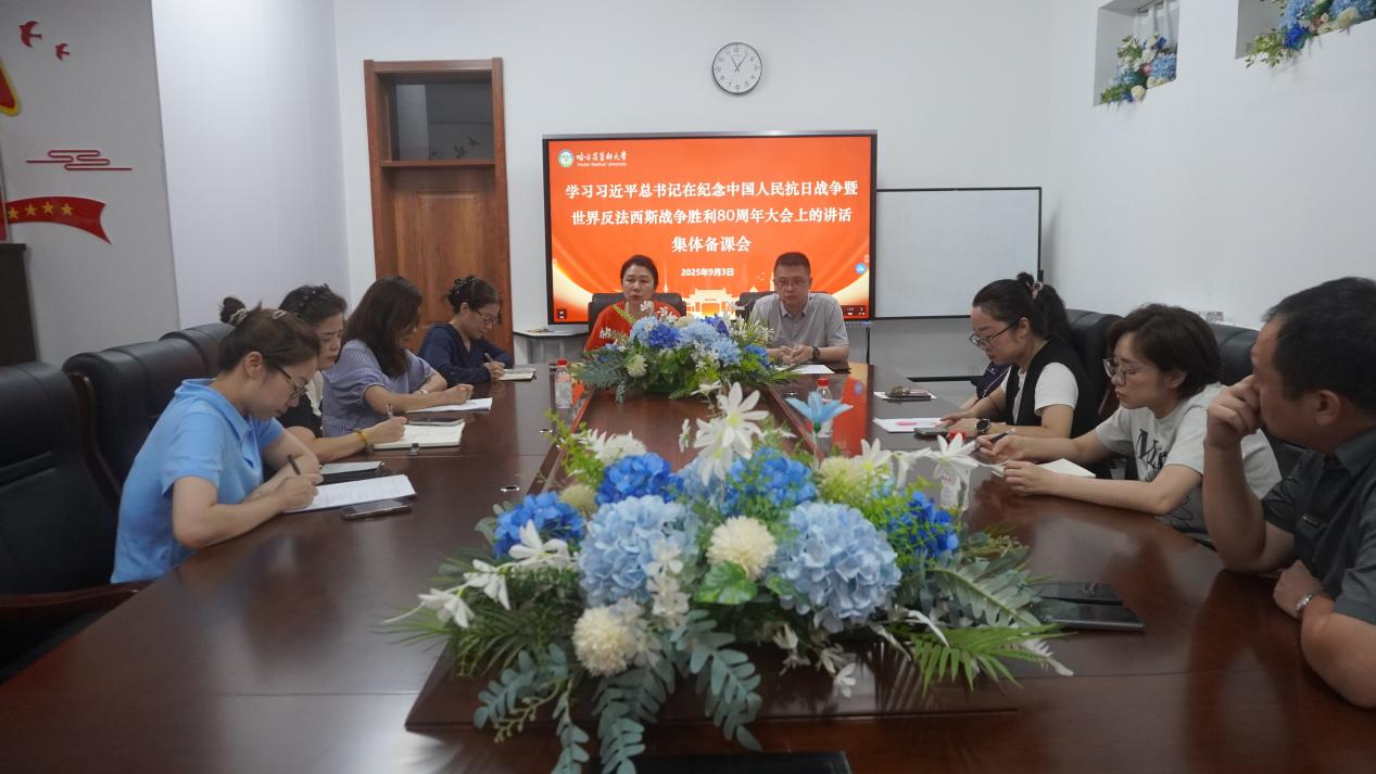 9月3日上午,习近平总书记在纪念中国人民抗日战争暨世界反法西斯战争胜利 80 周年大会上发表重要讲话。当日,马克思主义学院迅速组织召开集体备课会,深入学习领会习近平总书记的讲话精神,为后续的教学工作做好充分准备。