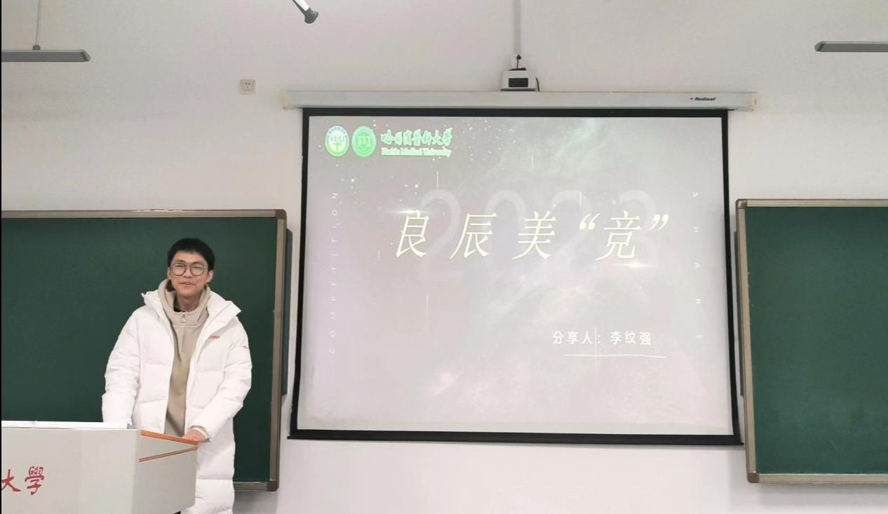 第二位进行讲座分享的是国家级大创项目负责人、2021级公共卫生事业管理专业班长李纹强同学,他分享的主题是“良辰美竟”。李纹强同学从个人简介、竞赛目的、竞赛分析和总结展望四部分内容进行了分享。他结合亲身丰富的参赛获奖经历,向同学们分享了自己宝贵的经验和收获,并提出人应当永远保持谦逊好学。最后,李纹强同学祝愿同学们都能良辰美“竟”,大放光彩。
