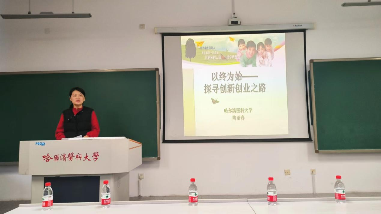 第一位进行分享的是国家级大创项目指导教师、beat365在线唯一官网健康教育学教研室陶雨春老师,她分享的题目是“以终为始—探寻创新创业之路”。陶雨春老师从熵增定律、创新领域视频分享、创新创业之路几部分内容进行了分享。陶雨春老师指出了探寻创新创业之路的方法,她告诉我们要记住人生不在一时得失,要有备而来为创新做准备。最后,陶雨春老师祝同学们新的一年陶然自得、风调雨顺、春风得意。
