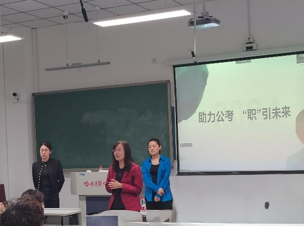 通过对以上三部分内容的倾听,大家结合对公考的了解和自身备考规划的疑惑进行提问,进一步丰富完善了本次讲座的内容。紧接着董威兰老师综合学院相关专业学生在公考中面临的问题和蒋老师进行交流。最后焦明丽老师结合之前的面试官经历,同蒋老师就面试中需要着重注意的面试技巧及礼仪进行探讨,加深了同学们对面试的了解。