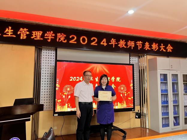 首先,卫生管理学院院长郝艳华在会上宣读了表彰决定。分别由公共卫生学院党委书记刘振华、院长郝艳华、副院长焦明丽为获得“优秀教师奖”、“优秀青年教师奖”、“教学突出贡献奖”、“优秀教学管理者奖”、“优秀论文指导教师奖”、“优秀竞赛指导教师奖”、“教学竞赛标兵奖”的教研室和教师颁奖并合影留念。