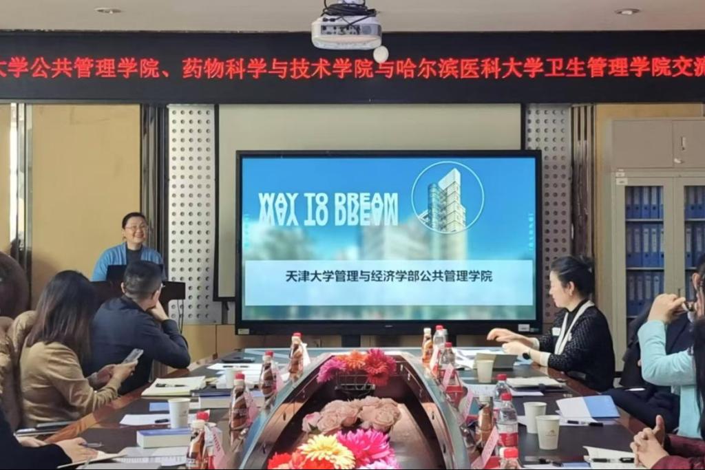 近日,天津大学公共管理学院院长傅利平教授、药物科学与技术学院党委书记吴晶教授等一行5人到我院交流座谈。学院郝艳华院长、吴群红教授、焦明丽副院长、康正副院长、刘国祥教授等参加座谈,会议由焦明丽副院长主持。