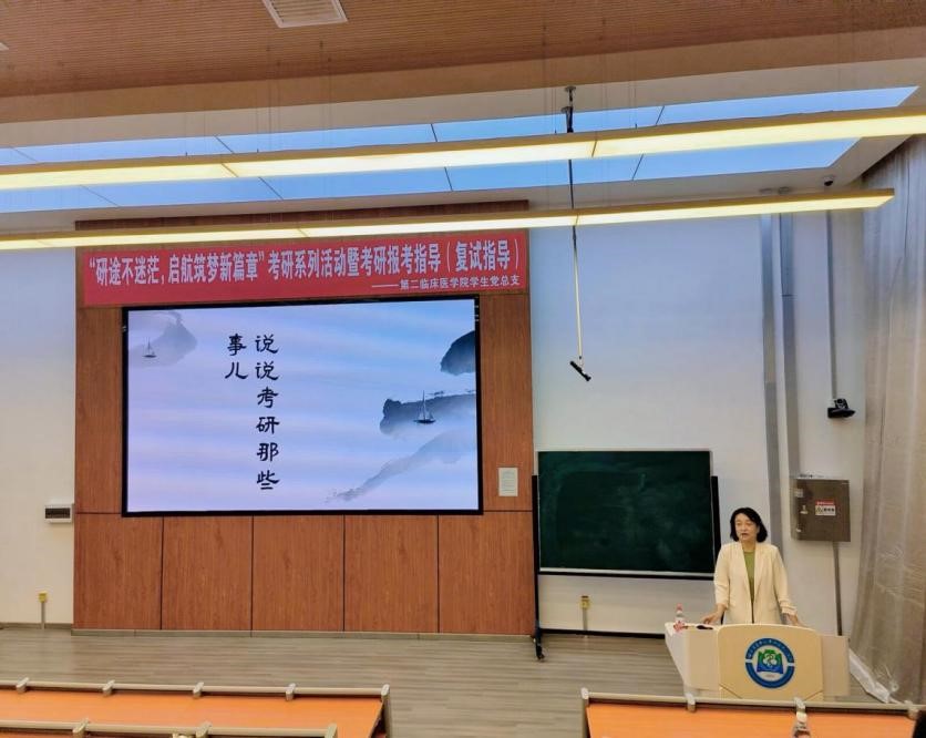 第二临床医学院 学生党总支特举办“研途不迷茫,启航筑梦新篇章”考研系列活动暨考研报考指导(复试指导)。本次活动由第二临床医学院学生党总支书记、学生科科长付玉老师主讲,内容涵盖考研报考指导及复试相关事项。