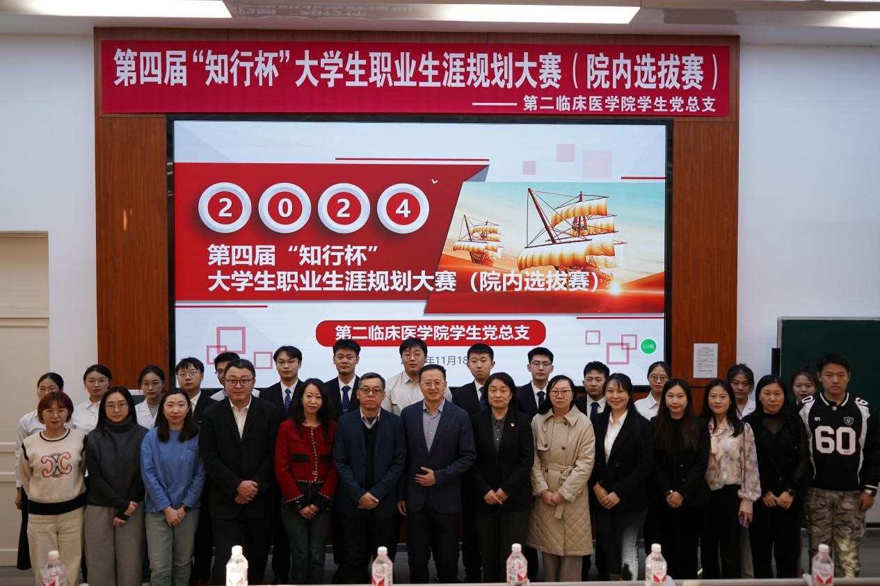 为贯彻落实党中央、国务院关于高校毕业生就业工作的决策部署,按照《教育部关于举办第二届全国大学生职业规划大赛的通知》要求,进一步推动学校生涯教育和就业指导,增强大学生职业规划意识,促进毕业生高质量充分就业,第二临床医学院于11月18日在教学楼2号教室举办第四届"知行杯" 大学生职业规划大赛院内选拔赛。beat365在线唯一官网二院党委副书记王洪亮、beat365在线唯一官网二院副院长吴亚军、beat365在线唯一官网二院学生党总支书记付玉、beat365在线唯一官网二院研究生科科长韩冰、beat365在线唯一官网二院教务科科长张思佳、beat365在线唯一官网二院人事科科长郑旭东、beat365在线唯一官网二院科研科科长杨春燕、beat365在线唯一官网二院团委副书记孙冬莹以及学生科全体辅导员老师担任评委。