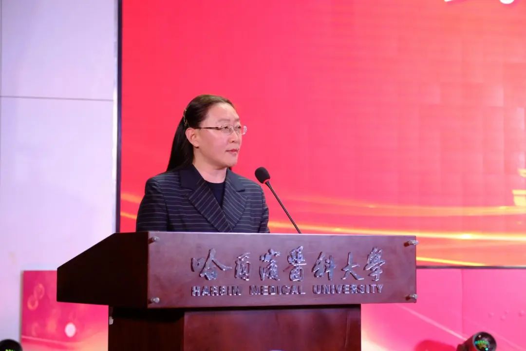 学校党委副书记东梅讲话。她代表学校祝贺所有获得表彰的学生和集体,向辛苦耕耘的教师和长期以来关心支持学生成长成才的教职员工致以崇高的敬意和衷心的感谢!希望全体学生汲取榜样力量,共同书写哈医学子的时代群像。