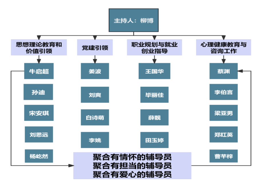 工作室在学校中的功能被明确定位为辅导员个人专业化职业化发展和引领学生成长的重要平台,为辅导员提供业务培训、经验交流等机会,帮助其提升自身专业素养和育人水平。团队综合素质过硬,主持人统筹推进各项工作,多方合力推动工作室健康发展。
