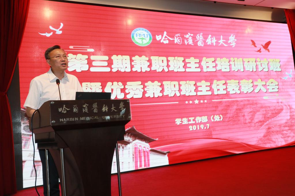 7月15-16日下午,学工部在学校主楼三楼会议厅举办了第三期全校兼职班主任培训研讨班暨优秀兼职班主任表彰大会。学校党委书记张斌、党办主任郭松出席开班式及表彰大会,学工部部长周艳娟主持会议。
