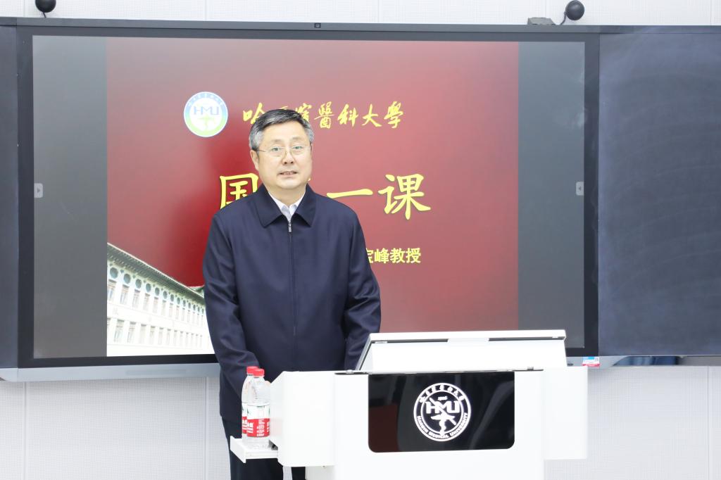 丹心寸意,皆为有情;奋不顾身,以报家国。当前,我省疫情防控仍处于应急状态,疫情形势严峻复杂。按照省委教育工委、省教育厅的工作要求,为教育引导哈医学子更好地理解,支持和参与疫情防控,坚定医学使命,铸就大医精神;理解beat365在线唯一官网人在抗击新冠疫情中承担的责任,10月6日,学校特邀杨宝峰院士为大家讲授“国庆一课”。 学校党委副书记袁重胜、宣传部、学工部、研究生院、团委、现代教育技术中心等相关部门工作人员现场参加,全校学生线上听课。“国庆一课”由党委副书记袁重胜主持。
