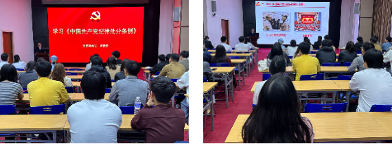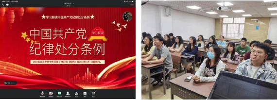 第一临床医学院 各学生党支部通过支部大会和主题党日开展党纪研读学习活动,全体学生党员在研读会上轮流朗读《中国共产党纪律处分条例》,并采取新旧对比、逐条讨论的方式开展学习。