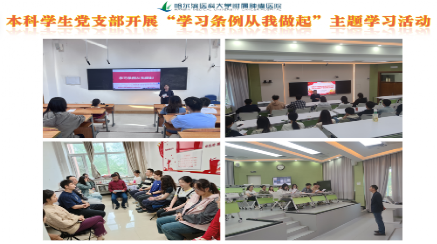第三临床医学院 3个本科学生党支部开展“学习条例,从我做起”学生党员党纪学习会。此次学习会旨在通过深入学习和讨论,使学生党员更加全面、系统地掌握《条例》的基本内容、精神实质和实践要求,进一步增强党员意识和党性观念,发挥先锋模范作用。