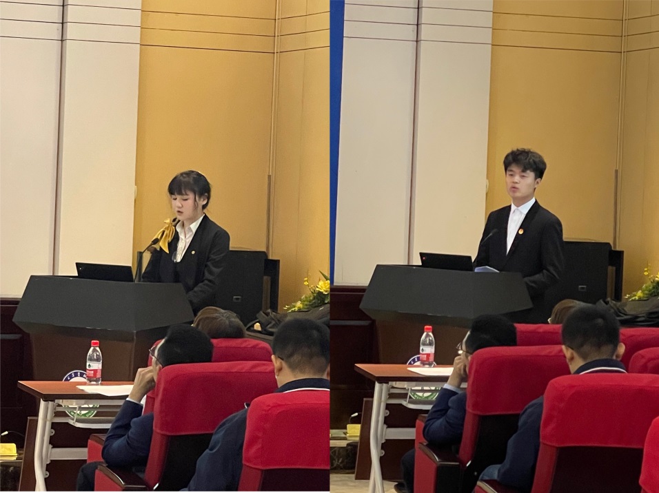 随后校十佳大学生、 2016级卫生监督团支书李煜霏同学和校优秀共青团干部 、2019级预防医学四班班长、学院学生会副主席汤天德同学先后进行了事迹分享。两位同学分别从不同角度将党史学习教育与弘扬五四精神结合起来,号召学院青年敢于奉献、勇于担当,传承红色基因、坚定理想信念,坚定不移地听党话、跟党走,努力在全面建设社会主义现代化国家伟大实践中谱写人生的华章。
