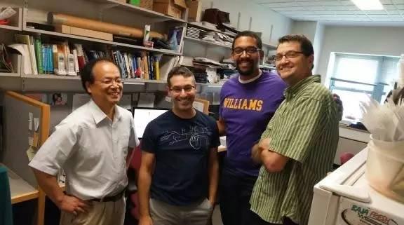 周春水教授(左一)与哈佛医学院细胞生物系史迪文吉吉教授(右一)及其实验室部分成员在一起。