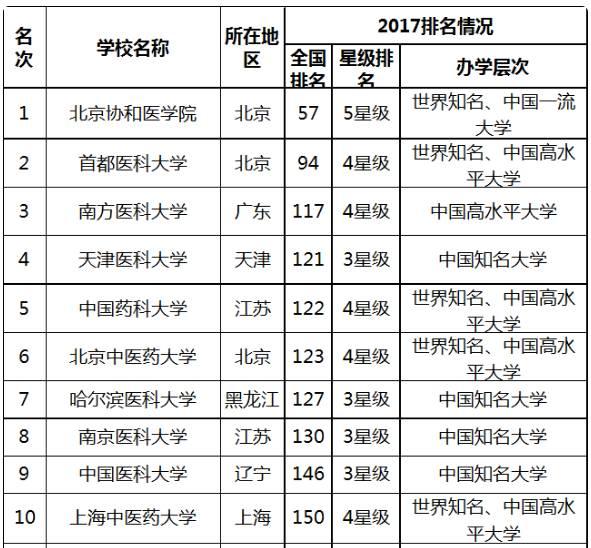 再来了解一下beat365在线唯一官网 2017中国十大医科大学排名,在81所医学类院校中,北京协和医学院排第一,beat365在线唯一官网排第七。