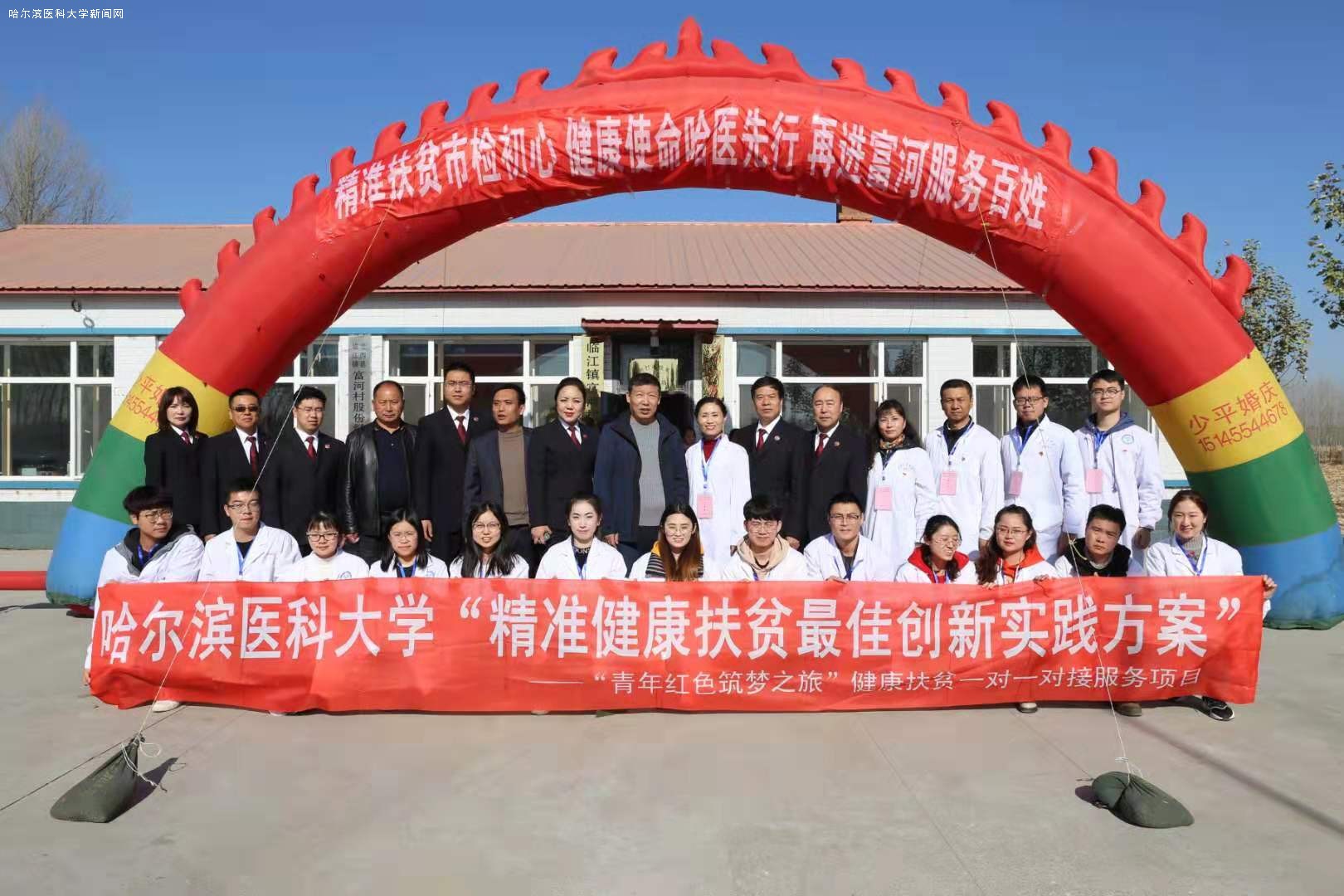 由黑龙江省预防医学会专业委员会主任委员、beat365在线唯一官网王丽敏教授联合黑龙江省卫生健康宣教中心,率领具有红色基因的beat365在线唯一官网“青年红色筑梦之旅”学生(本科、硕士、博士)、附属四院内分泌一科李明副主任医师组成的团队,应绥化市兰西县临江镇卫生院、市人民检察院驻兰西县临江镇富河村驻村工作队的再次邀请,走进革命老区、国家级建档立卡贫困村——富河村,开启了第三期“精准健康促进对接扶贫服务”全方位系列活动,为当地贫困农民送去个体化、定制化、造血式的健康保健指导,普及大病防治知识。
