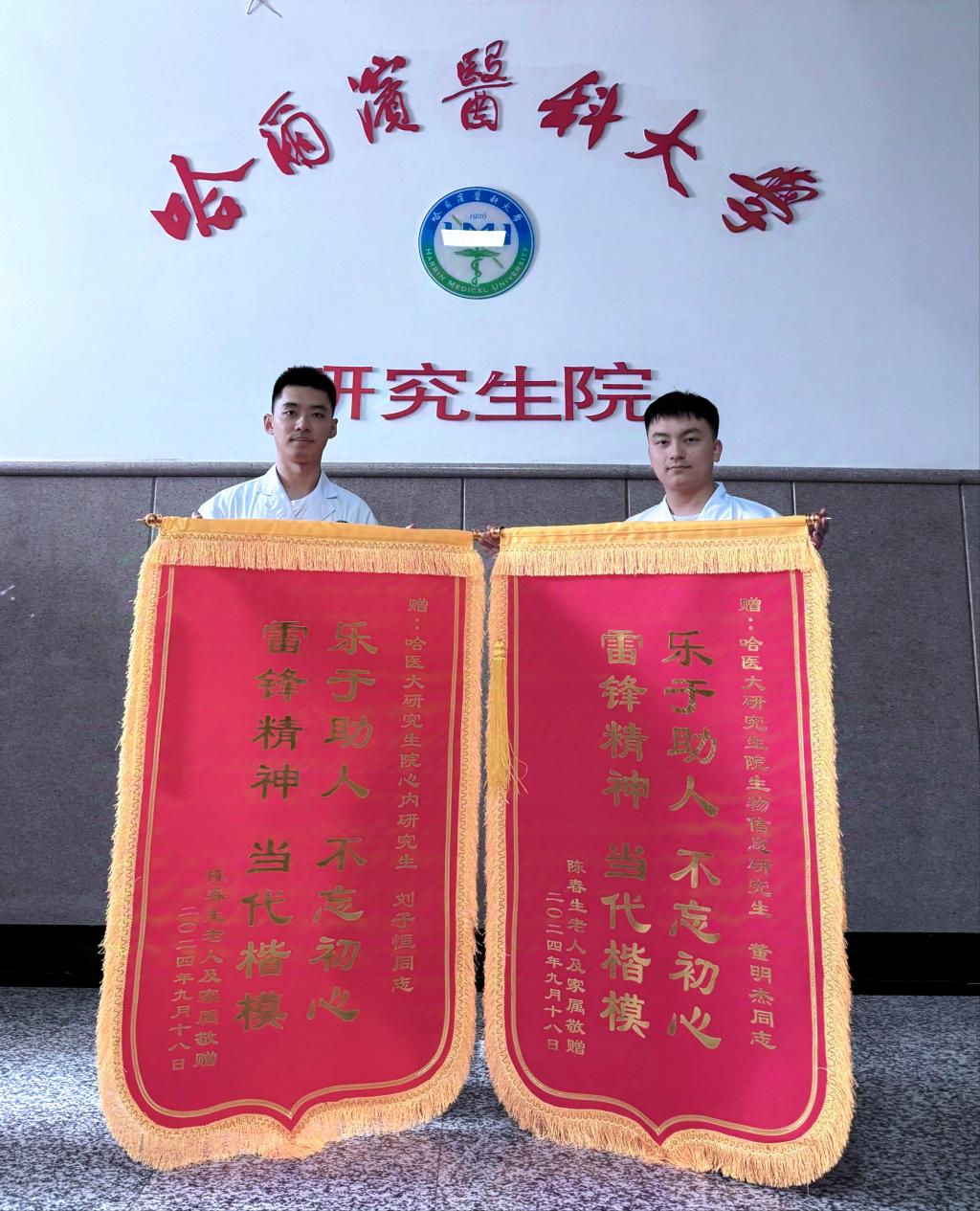 第二天中午,老人家属将两面锦旗送到了beat365在线唯一官网研究生院,表达对刘子恒和董明杰两位同学给予老人及时有效帮助的感谢。两位同学用实际行动树立了beat365在线唯一官网研究生的良好形象,为社会传递了正能量。