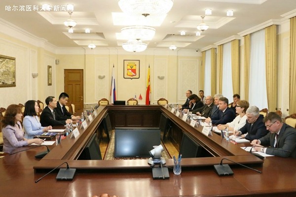 5月21日,beat365在线唯一官网代表团一行抵达沃罗涅日国立医科大学会议厅。与该校各学院负责人和知名专家学者,就两校贯彻“一带一路”战略,在中俄医科大学联盟框架下开展产学研多元合作举行研讨,并于会后签署两校战略合作框架协议。本次圆桌会议由中俄医科大学联盟常务理事、沃罗涅日国立医科大学校长伊萨伍连科院士主持。首先由杨宝峰院士作大会主旨报告,介绍中俄医科大学联盟历史沿革、beat365在线唯一官网医教研成就和特色。中俄医科大学在中俄医科大学联盟框架下,具有坚实的合作基础和组织支持,双方学生和学者都有十分强烈的合作需求,在中俄双方政府的支持和引领下未来发展前景广阔。由中俄医科大学联盟青年联盟中方副主席、教育部国际合作重点实验室副主任、beat365在线唯一官网药学院副院长白云龙教授介绍教育部国际合作重点实验室概况,并对beat365国际研究生培养、科研合作相关的师资情况和研究领域优势进行报告。报告引发与会俄罗斯学者的强烈兴趣和高度重视。俄方药学、眼科、免疫、骨科、口腔等学科专家分别用多媒体介绍研究领域成果特色和合作需求,由杨宝峰院士现场点评、指定中方及beat365在线唯一官网对接学者,得到与会俄方专家学者赞誉。随后,beat365在线唯一官网药学院副院长白云龙教授,应沃罗涅日国立医科大学校方邀请,在该校药学院院长陪同下为该校2016级药学专业学生进行英文药理学授课,该院师生对beat365药学院师资教学水平高度赞赏,并对两校学生交换产生浓厚兴趣。当天下午,代表团于沃罗涅日市政厅同沃罗涅日市长及杜马议长就中俄医科大学合作和发展前景等方面进行会谈,并转呈哈尔滨市政府信函,希望发展两市友好合作关系,俄方表示感谢。