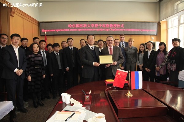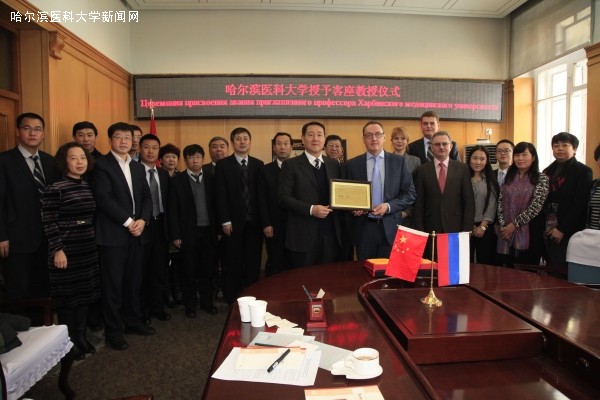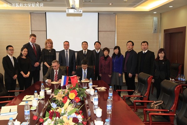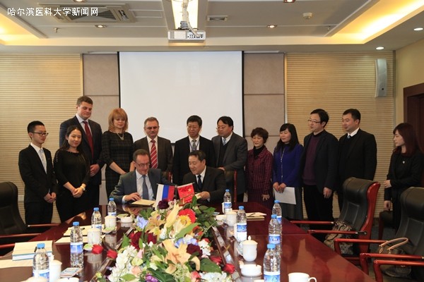 杨宝峰校长与俄方签署了两校关于中国工程院咨询研究项目《我国重大寒地疾病(高血压)防控对策国际比较研究》的合作协议