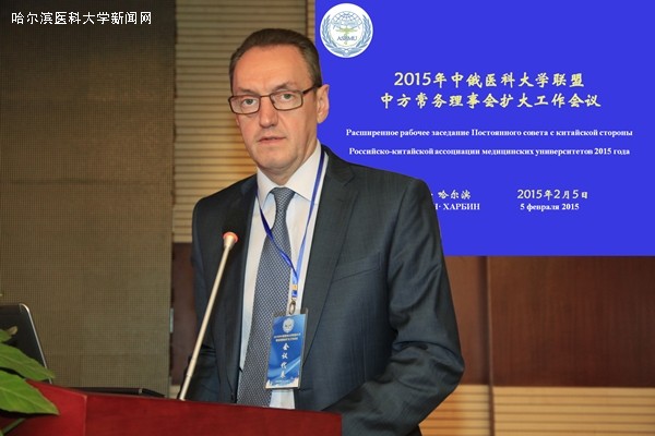 2月5日,斯维斯杜诺夫副校长和弗拉迪米尔副校长等莫医大代表应邀参加了中俄医科大学联盟中方常务理事会扩大工作会议,并向与会代表汇报了中俄医科大学联盟2015年俄方医学教育、科学研究的工作计划,并与中方代表共同讨论了联盟今后发展愿景,并提出了设立联盟网站、联合培养学生和实现教授互聘讲学的建议。
